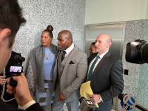 Kenneth Windley, center, speaks with reporters while accompanied by his fiancée, Donna Carter, left, and attorney David Shanies, right, outside of the courthouse in the Brooklyn borough of New York, Monday, March 16, 2026. (AP Photo/Jennifer Peltz)   (Associated Press)