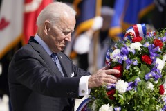 His face tight with emotion, Biden walked up to the wreath, cupping it in his hands in silent reflection and then making the sign of the cross. Later, he called on Americans to commemorate their fallen heroes by remembering their fight for the nation's ideals.