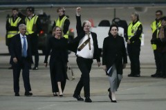 Assange embraced his wife Stella Assange and father John Shipton who were waiting on the tarmac, but avoided media at a news conference less than than two hours after he landed.
