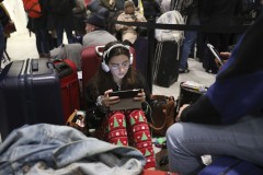 The airport's arrival and departure boards showed the busy airport inching towards normal but still showing an unusual number of delayed takeoffs and landings.