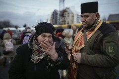 People streamed out of Kyiv’s suburbs a day earlier, many headed for the city center, as explosions were heard in the capital and air raid sirens sounded repeatedly. From there, the evacuees planned to board trains bound for western Ukrainian regions not under attack.