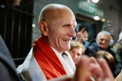Nobel Peace Prize laureate Ales Bialiatski, one of released Belarusian prisoners, smiles surrounded by his supporters as he arrives at the U.S. Embassy in Vilnius, Lithuania, on Saturday, Dec. 13, 2025.(AP Photo/Mindaugas Kulbis)   (Associated Press)