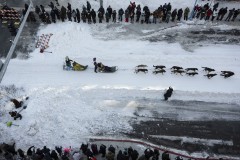 The race’s description of the trail for mushers encourages them to do this stretch in a convoy with one or more teams because they might require help. Conditions include windblown gravel sandbars, high winds, rivers, a glacier, slippery conditions and ice at the bottom of a canyon.