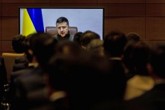 Zelenskyy’s speech was broadcast live in a parliamentary hall packed with hundreds of lawmakers, including Prime Minister Fumio Kishida.