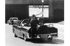 Zapruder's film captured Hill as he leaped from the Secret Service car, grabbed a handle on the limousine's trunk and pulled himself onto it as the driver accelerated. He forced Mrs. Kennedy, who had crawled onto the trunk, back into her seat as the limousine sped off.