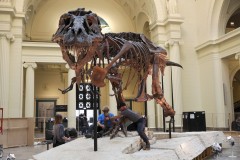 Eventually, the couple was able to claim the rights, and they made $7.6 million from the auction of Sue — now on display at Chicago's Field Museum. The museum's website says that at more than 40 feet (12.2 meters) long and 13 feet (4 meters) tall at the hip, Sue is the largest Tyrannosaurus rex specimen discovered and the most complete.