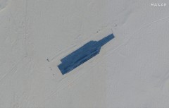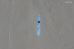 The images captured by Colorado-based satellite imagery company Maxar Technologies dated Sunday show the outlines of a U.S. aircraft carrier and at least one destroyer sitting on a railway track.