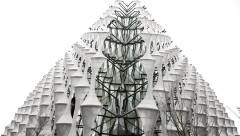 A number of interior gardens emphasize American themes — one evokes the Grand Canyon, another is designed to look like Pacific forests — and the housing for U.S. Marines includes a landscaped outdoor seating area.