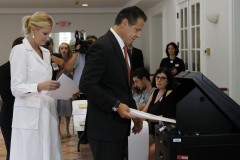 Nixon posed for photos with supporters in Manhattan's Union Square before she voted Thursday at a community center. Cuomo appeared at a polling station in suburban Mount Kisco with his girlfriend, Sandra Lee.