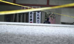 The accomplice attacked the driver with a samurai sword and pursued him as he ran out of the temple grounds and about 100 meters (300 feet) down a road, police said. A trail of splattered blood was still visible on the pavement Friday morning. The driver's injuries were not life-threatening.