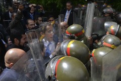 As a scuffle broke out with security forces in riot gear, the U.S.-backed leader tried unsuccessfully to mount an iron fence surrounding the neo-classical palace where the opposition-controlled National Assembly was set to elect its leader for the final year of its 2015-2020 period.