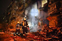 Residents of a Kyiv apartment building woke to screaming, smoke and flying dust. What the mayor identified as Russian shelling tore off part of the building and ignited a fire.