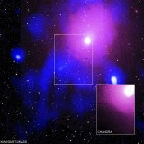 Astronomers used NASA's Chandra X-Ray Observatory to make the discovery, along with a European space observatory and ground telescopes. They believe the explosion came from the heart of the Ophiuchus cluster of thousands of galaxies: a large galaxy at the center contains a colossal black hole.