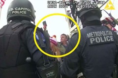 Video footage captured Johnston pushing against police and helping rioters who attacked officers guarding an entrance to the Capitol in a tunnel on the Lower West Terrace, according to an FBI agent’s affidavit. Johnston held a stolen police shield over his head and passed it to other rioters during the attack on Jan. 6, 2021, the affidavit says.