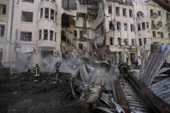 In the eastern city of Kharkiv, firefighters doused the smoldering remains of a four-story residential building. It was unclear whether there were casualties.