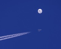 Ashlyn Preaux, 33, went out to get her mail in Forestbrook, South Carolina, just inland of Myrtle Beach when she saw her neighbors gathered outside. Curious, she went to see what they were looking at. It was easy to spot the balloon in the cloudless blue sky and then what appeared to be fighter jets circling overhead as well. After the strike, she could see the balloon start to fall apart and fall from the sky.