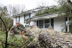 Thursday's storm destroyed mobile homes in Mississippi and Alabama, caused mudslides in Tennessee and Kentucky and flooded communities that shoulder waterways across the Appalachian region. Rain kept falling over a path of splintered trees and sagging power lines that stretched from Louisiana into Virginia. School districts canceled classes in state after state as bad weather rolled through.