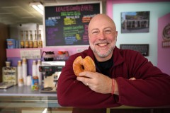 The mural atop the bakery, which was founded over 45 years ago, is a creation of local high school art students. When it went up in June 2022, the painting attracted a lot of compliments and visitors, including one from a town zoning officer.