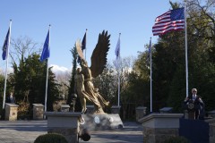 After the Veterans Day observance, Biden flew home to Delaware to attend the unveiling of a plaque in Claymont honoring his late son. Biden also visited Beau's gravesite in Wilmington.