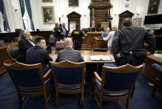 As the jury deliberated, dozens of protesters — some for Rittenhouse, some against — stood outside the courthouse. Some talked quietly with those on the other side, while others shouted insults. One woman could be heard repeatedly calling Rittenhouse supporters “white supremacists.”
