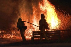 Around 200 firefighters, aided by bulldozers and water-dropping helicopters, had the blaze 15 percent contained by late Saturday night.