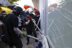 HONG KONG (AP) — A small group of protesters smashed out the bottom of a floor-to-ceiling window at Hong Kong's legislature Monday as a crowd of thousands marched through the city demanding democracy on the 22nd anniversary of the former British colony's return to China.