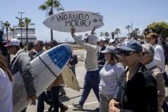 “Ensenada is a mass grave,” read one placard carried by protesters. “Australia, we are with you,” one man scrawled on one of the half-dozen surf boards at the demonstration.