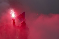 The mood was impassioned in the crowd as it moved toward the Republique Plaza, with protesters waving red flares in the gray sky at the head of the crowd.