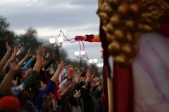 Families, tourists and locals generally set up their chairs and ladders early to get a good seat for catching the trinkets thrown by riders on the floats.