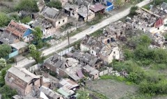 Not a single person is seen in the footage obtained late Friday, and no building in Ocheretyne appears to have been left untouched by the fighting. Most houses, apartment blocks and other buildings look damaged beyond repair, and many houses have been pummeled into piles of wood and bricks. A factory on the outskirts has also been badly damaged.