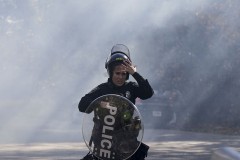Some marchers retreated from the clash while others tried to wash away the effects of tear gas. Dozens of protesters ran into the woods near the property where the training center is being built and exited with their hands up. The marchers eventually retreated as a group without any arrests being made. Vomiting and irritation from the tear gas were the only apparent injuries.