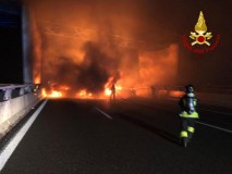Photos released by firefighters showed vehicles in flames on the darkened highway.
