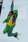 All-around silver medalist Rebeca Andrade of Brazil gave her country its first-ever Olympic gold in gymnastics by soaring to victory in vault. Andrade's Cheng — where her block is so big it seems as if she just leapt off the catwalk above the competition floor — received a 15.166 even though she stepped out of bounds on her dismount. She followed with an Amanar that finished with a couple of tiny hops that gave her a two-vault average of 15.083.