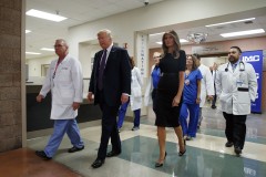 President Donald Trump and first lady Melania Trump met privately with victims at a Las Vegas hospital Wednesday and then with police officers and dispatchers, praising them and the doctors who treated the wounded.