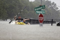 HOUSTON (AP) — Rising floodwaters from the remnants of Hurricane Harvey chased thousands of people to rooftops or higher ground Sunday in Houston, overwhelming rescuers who fielded countless desperate calls for help.