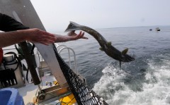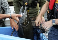 Researchers with the Whale Sanctuary Project practiced taking samples of fish scales so they can later genetically track whether the whale consumed that fish. A King County research vessel drove alongside, also carrying fish, to provide support.