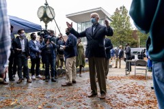 Both campaigns focused Monday on Pennsylvania, with Trump drawing thousands of largely mask-less supporters to rallies while Biden popped just over the border from his home in Delaware to greet a small group of supporters outside a campaign field office in Chester.