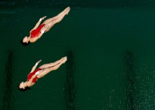 RIO DE JANEIRO (AP) — Green, not gold, was the color of the day at the Olympic diving venue.