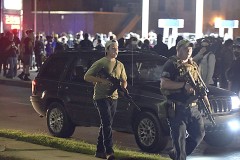 Video taken before the shooting shows police tossing bottled water from an armored vehicle and thanking civilians armed with long guns walking the streets. One of them appears to be the gunman.