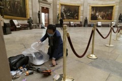 The image of Kim crouched down clearing away litter bookended a violent, historic day that saw an angry mob smash through police lines, break windows and wrench open doors as they sieged the building, not long after Trump said at a rally they should show “strength” and fight against Congress’ certification of Biden’s win.