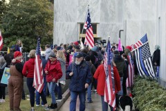 Some were carrying guns. Some shouted false QAnon conspiracy theories about Democrats kidnapping babies. They carried American flags, banners for former President Donald Trump and a sign calling for the arrest of Democratic Gov. Kate Brown. They broke windows and assaulted journalists.