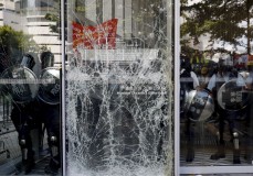 Protesters whacked away at thick glass windows until they shattered and then pried open steel security gates. Police initially retreated as the protesters entered, avoiding a confrontation and giving them the run of the building.