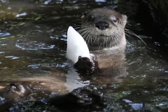 Staff at the Palm Beach Zoo & Conservation Society use a variety of techniques to keep their animals cool. Zookeepers throw large piles of ice into the black bear enclosure for the animals to wallow in, chilling their pool to 74 F (23 C). The otters get ice blocks and frozen fish tossed into their water for playing and eating.