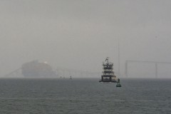 At the moment there are also cargo containers hanging dangerously off the side of the ship, Gilreath said, adding, “We’re trying to keep our first responders … as safe as possible.”