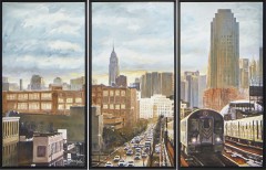 One addition — “One Too Many” from 2020 — features a man slumped over a smoky bar counter at the end of a night, and another “Subway Cityscape,” also from 2020, showcase’s Dylan’s love of industrial urban city scenes.