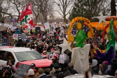 MINNEAPOLIS (AP) — Thousands of people marched in Minneapolis on Saturday to protest the fatal shooting of a woman by a federal immigration officer there and the shooting of two people in Portland, Oregon. Minnesota leaders urged demonstrators to remain peaceful.