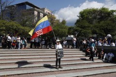Guaido has called for nationwide demonstrations coinciding with his arrival. Thousands of supporters heeded the call, peacefully gathering at a Caracas plaza and in other locations around the country. Some people carried national flags.