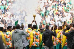 Ahead of a friendly match against Peru at Stade de France, Senegal players led by captain Kalidou Koulibaly took to the pitch with the trophy as part of pre-game celebrations.