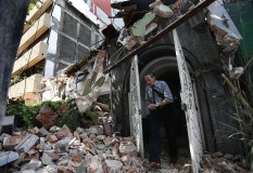 Alma Gonzalez was in her fourth floor apartment in the Roma neighborhood when the quake collapsed the ground floor of her building, leaving her no way out — until neighbors set up a ladder on their roof and helped her slide out a side window.