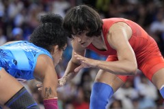 Phogat announced Aug. 8 on social media that she would retire from the sport. The post, written in Hindi, translates as: “My courage is broken, I don’t have any more strength now. Goodbye Wrestling, 2001-2024.”